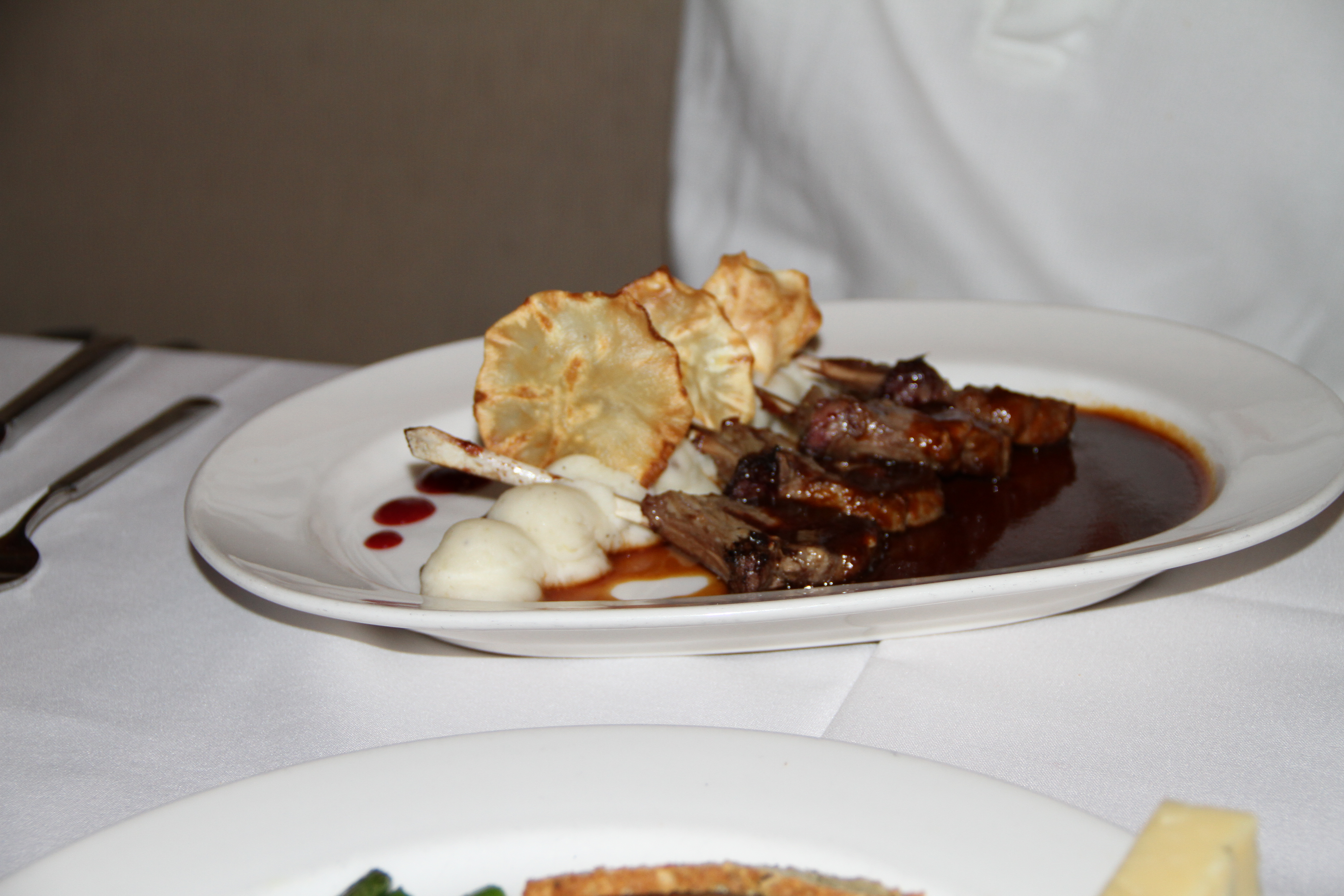 Grilled Lamb Chops port wine roasted shallots • celery root chips • sour cherry reduction • mashed potatoes • rosemary demi-glaze
