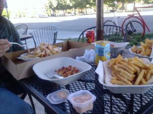 It doesn’t need any toppings but you can adorn it with anything from fruit to creme fraiche. The Machine Gun (as featured on the Travel Channel’s Man vs. Food) is basically a lamb sausage on a baguette with an andalouse sauce. They were out of the regular andalouse sauce so we instead got a spicy sauce called the Samurai sauce. The sauce was awesome. It had good kick to it and surprised my palate. Bruges offers a number of different dipping sauces that compliments their fries or frites.The fries are double fried and have consistent flavor throughout. They’re not as good as shoestring fries or my favorite Arby’s fries but they were delicious enough and even better with the sauce. Just be sure that you don’t order an extra side of fries or you’ll have more fries than you can handle.